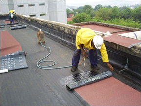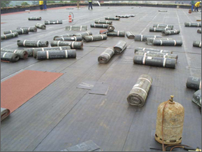 Mise en œuvre d’une couche, chauffage au chalumeau et pose d’une bande d’étanchéité au parafor
